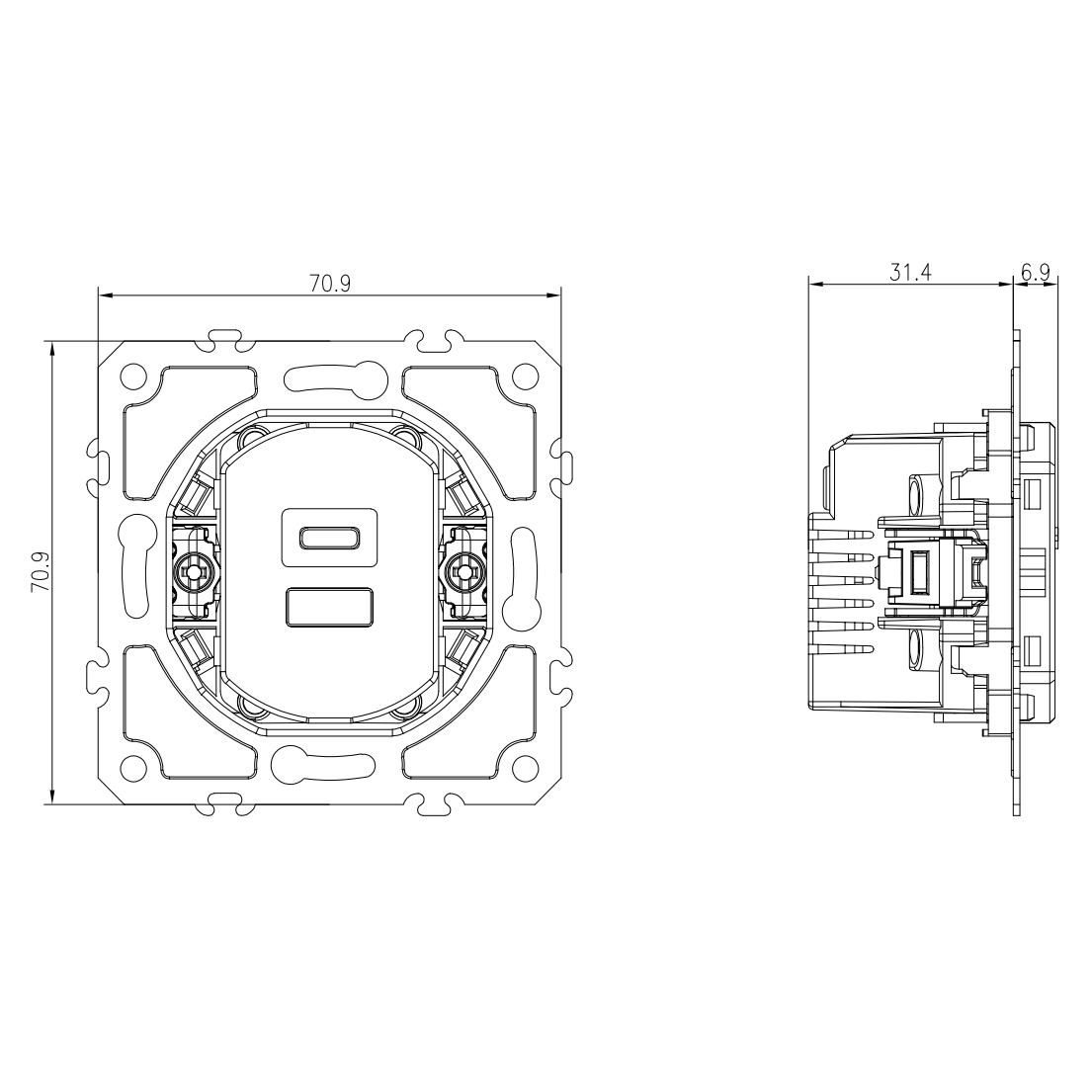 70,9x 70,9 x 31,4 mm